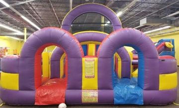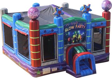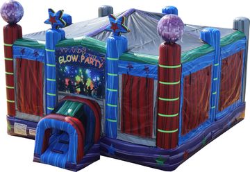 Dazzle your guests with this 5-in-1 combo unit! With our exclusive "wave" bo, a pommel horse, small tunnel, basketball hoop, and vertical obstacles for endless fun—all with a stunning glow-in-the-dark effect enhanced by built-in black lights.