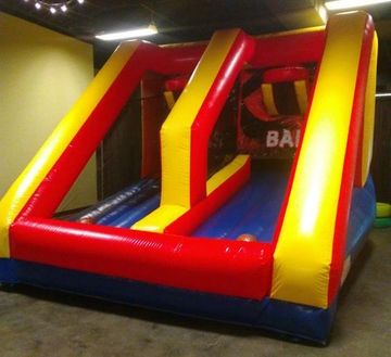 Fun and excitement of a Standard Bounce House with a basketball hoop inside!